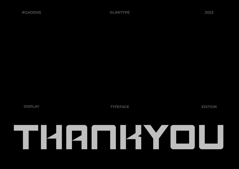 Gadems is a display typeface with futuristic characteristics with a modern and cool appearance with a unique shape. Gadems are inspired by modern digital typography which is getting more varied and experimental every day which of course influences the design style itself.