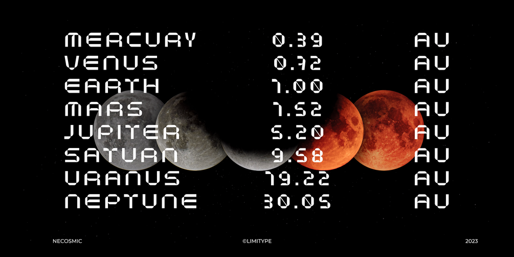 Elevate your design to the next level with Necosmic – a display font that radiates futuristic and modern style. Specifically designed to seamlessly integrate into technology, futuristic, and outer space themes, each character reflects innovation, creating an extraordinary impression in every design. Perfect your visual presentation with the sophistication of Necosmic – where progress meets inspiring typography.